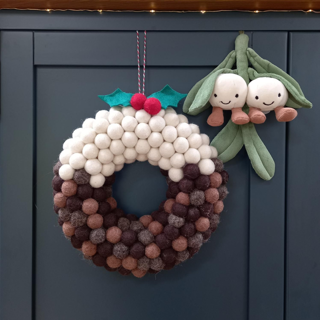 Christmas pudding felt ball wreath kit
