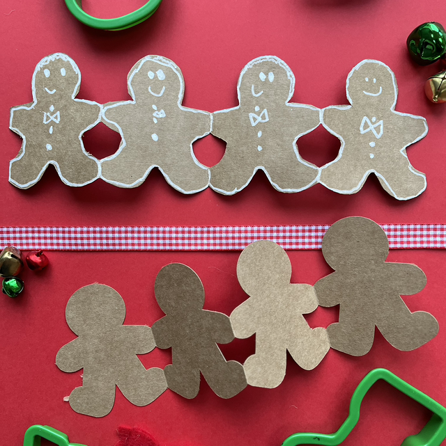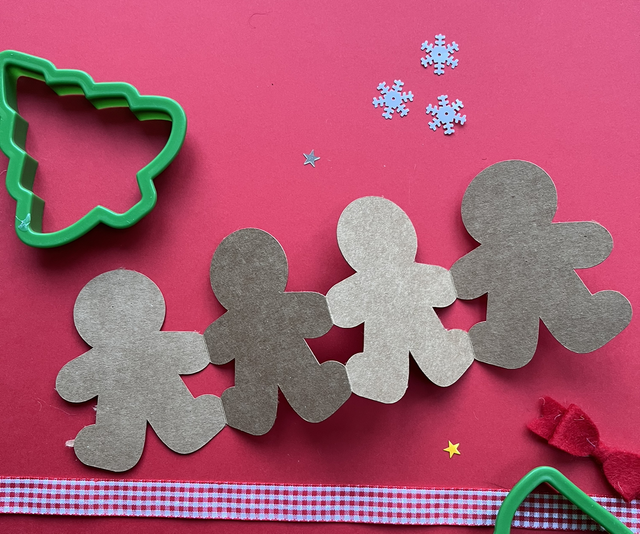 This craft pack doesn’t contain any craft materials for decorating the gingerbread men chain. You can add pens, buttons and any other Christmassy crafty bits you have at home for your little one to decorate the gingerbread man chain with.