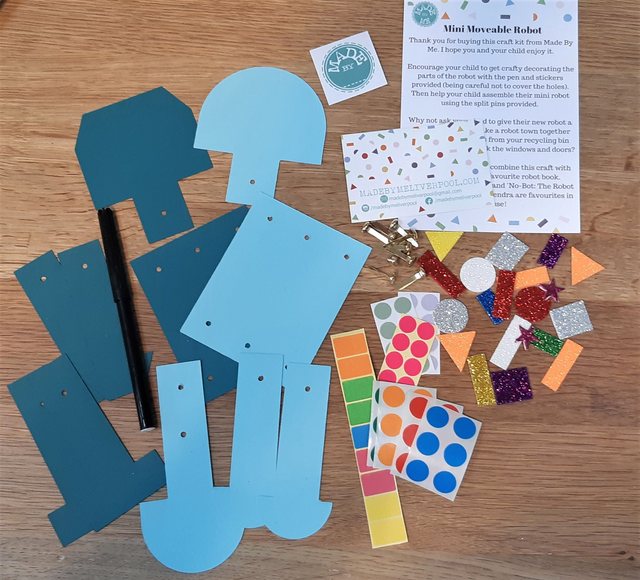 Calling all robot fans! This craft packs contains everything your little one needs to make 2 differently shaped card robots with split pins so the robot's arms, legs and head move, for hours of playing after assembly. The pack includes die cut card robot shapes, split pins, stickers and glitter foam stickers plus a pen to add extra details.